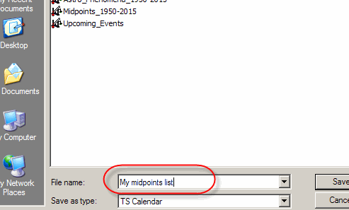 You will save the results of calculations into TS Calendar file (extension *.ts_ics) and program will run the calendar automatically: