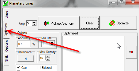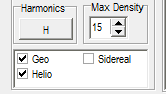 are used to set the Harmonics that are used for optimization, Zodiacs and maximal density for analyzed planetary lines. In our example, the parameter "Max. Density" set to 15 means that on your screen you do not prefer to see a bunch of 15 or more lines.