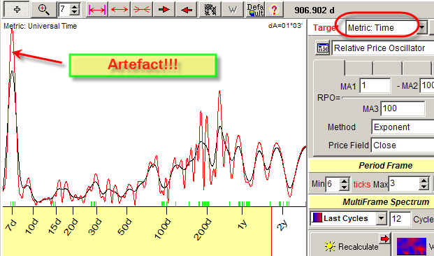O better set "Price Bar" metric to calculate the period of cycles in trading days: