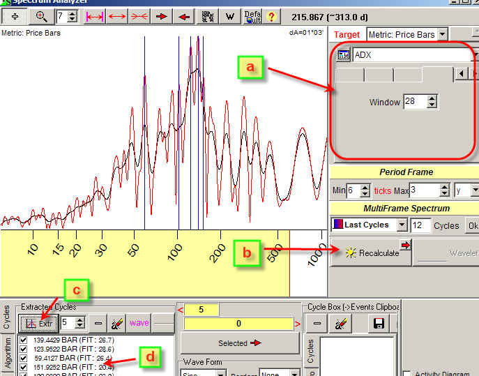 c) click   to extract five (as an example) dominant cycles;
