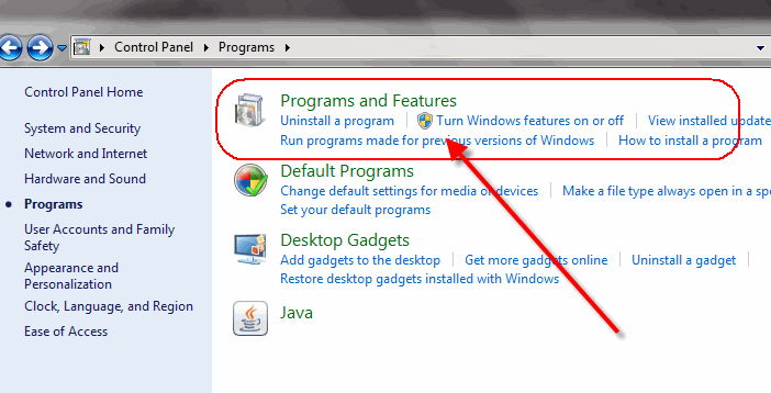 Step #3: click "Programs and Features"