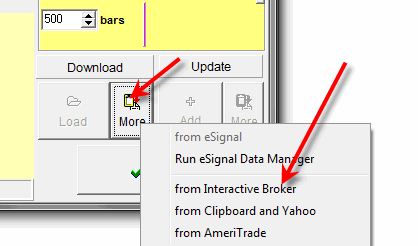 Interactive Brokers - they are not so costly, the data is good but not so clear as eSignal's. Personally, I like this company as they provide a very reliable interface for data feeding. If in the future they increase the quality of their data (they claim 99% of accuracy), I believe that it will be used as a major source for data feed. Timing Solution is able to work with the real time data from Interactive Brokers; this feature has been developed recently. To run it, download some price history this way: