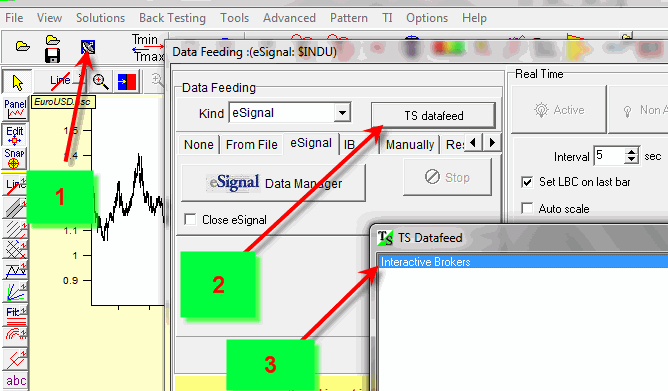eSignal - they provide the most clear data, and they are the most expensive as well. Last fall they announced the version 11, though for Timing Solution features you still have to download the version 10. It is possible to use both versions, 10 and 11, on one and the same computer. You should download 32 bit version. I plan to develop the interface for TS features compatible to v. 11 within several months. For now, you can work with version 10. The problem with eSignal is that it is hard to work with them (not for you, for me as the software developer). They constantly change something, and their changes tend to restrict previously available features. It means that some feature that worked well one year ago may be not working at all now. So I use only their basic features - just to be sure that they will be present in the future. Therefore, I prefer to wait for about a year before incorporating their new features (like those in the version 11); it is enough time for them to finish the development of new features and to fix the errors. I am not trying to find some excuses for myself. They really tend to restrict the possibilities. For example, several years ago it was possible to download long term intraday price history, while now you should pay additional fee if you want to download more than 6 months of intraday data. In the version 11 it is impossible to import the price history into Excel file (at least I could not find it) while this feature was available in the previous version.