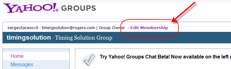 After creating your Yahoo account, you will start receiving Timing Solution Yahoo e-mails. You may need to change the e-mail address that is used for Timing Solution Yahoo Group e-mails. You can do it anytime, and it is simple - just click "Edit Membership" link: