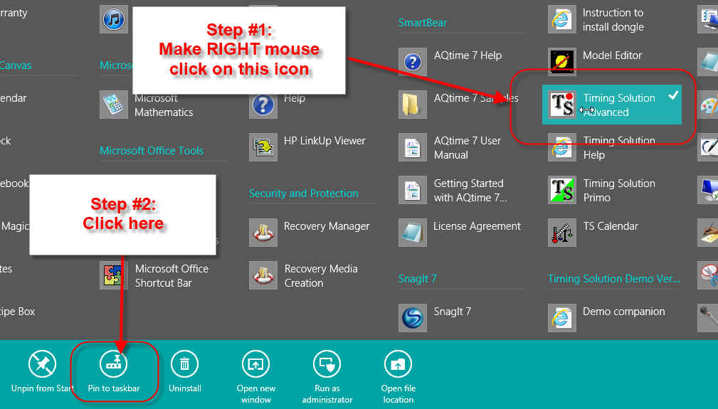 You can also speed up this process putting Timing Solution icon on the task bar. Follow these steps: