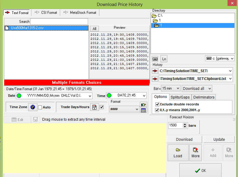 If you plan to download the price history from eSignal, clipboard, Yahoo ... click "More" button:
