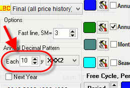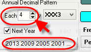 BTW, sometimes the situation like the one described further takes place: we calculate Annual+Decimal cycle in December 2012, so the program calculates the Annual cycle for XXX2 decimal, and we need to calculate Annual+Decimal cycle for the next year 2013, i.e. Annual cycle for XXX3 decimal pattern. In order to do that set "next year" option ON: