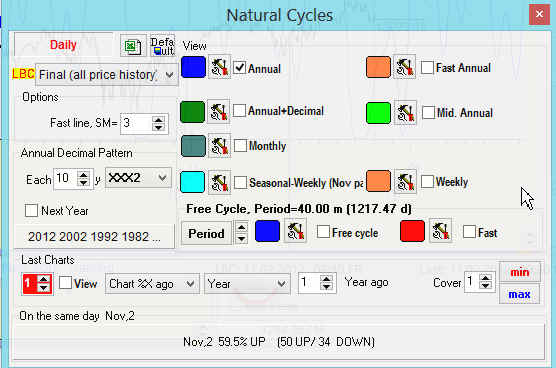 Let us start with the exploring natural cycles available for daily charts.