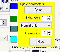 You can modify the color and thickness of the projection line for any cycle as well as the amount of harmonics. For example, look at the Annual cycle calculated for Dow Jones Industrial Index with different amounts of harmonics: