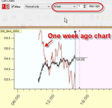 For intraday: one week ago price chart: i.e. display the price chart one week ago overlaying the current chart: