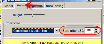 This parameter should be decreased/increased if you are interested in shorter/longer forecast. For example, if you need to get forecast for a shorter term than what is set on the picture above, decrease this parameter (say 50 bars after LBC instead of 300).