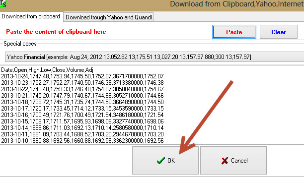 3) If everything is Ok you will get the list of financial data like this, click OK button: