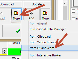 Almost all data feed systems allow saving price history data into text formats (Excel). Usually Timing Solution is able to read these files (now, in April, 2012, it supports more than 1000 different text formats). If we face with something very specific, you can always send me the example of this data (e-mail it to timingsolution@rogers.com), and this format will be added to a special program called "Rare Format". This program converts specific text formats into the format readable by Timing Solution software. Therefore, Timing Solution covers practically all available data formats. To download the "Rare Format" program, click here.
