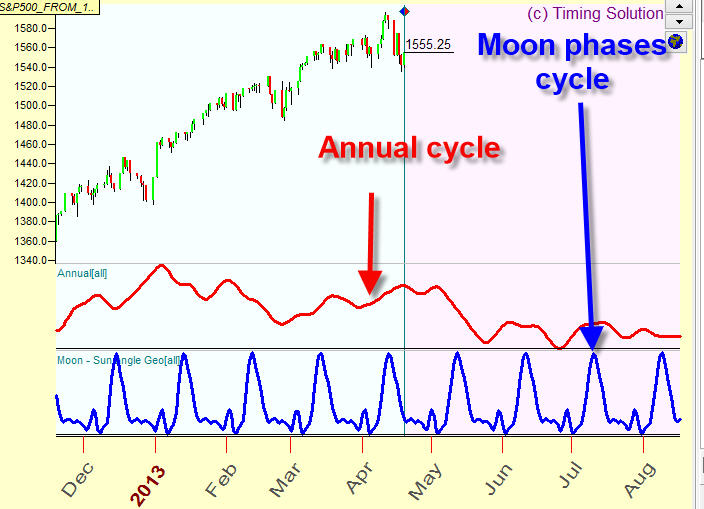 - build the simplest projection line (Composite module). To test yourselves, try to build a projection line provided by Annual and Moon phases cycles. You should get something similar to this: